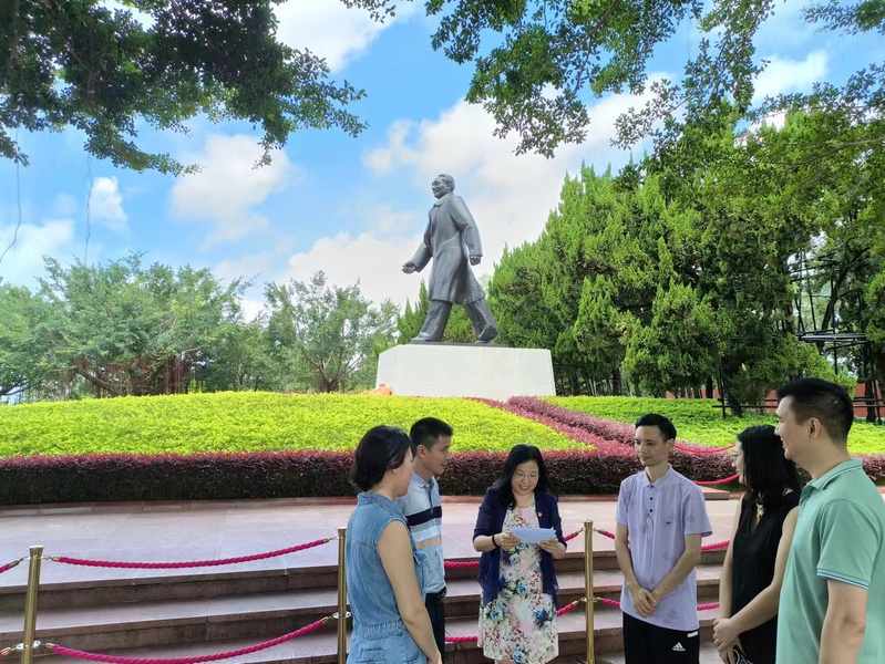 2023年5月26日,williamhill威廉希尔官网院长庞革英在深圳莲花山公园邓小平铜像前讲主题教育专题党课,williamhill威廉希尔官网直属党支部党员教师6人参加。